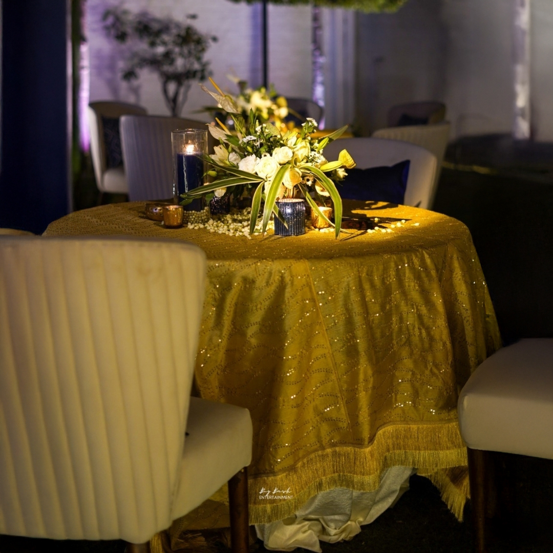 8 ft bar facade with counter, green facade and 2 hanging led candle trays